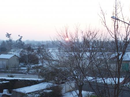 Sinon quoi de neuf ? Il neige !!! Je me suis reveillée ce matin avec un beau tapis blanc, j'ai hésité quant au fait d'aller travailler, mais j'y pris ma voiture et j'y suis allée, 35 mn au lieu de 10, sur une route enneigée et verglacée, autant dire que j'ai été très prudente, j'ai emmené mon appareil photo et ce matin au boulot j'ai pris 10 mn pour faire le tour et prendre quelques photos, je vais faire suivre l'album, le soleil pointe son nez par moment et laisse la place aux nuages, je ne sais pas encore ce que cela va donner. Je crois que je ne vais pas travailler cet après midi, le cours de danse de mardi a déjà été annulé et la réunion prévue ce soir pour les Boots ainsi que le cours risquent aussi de l'être après un coup de tél passé à la présidente.